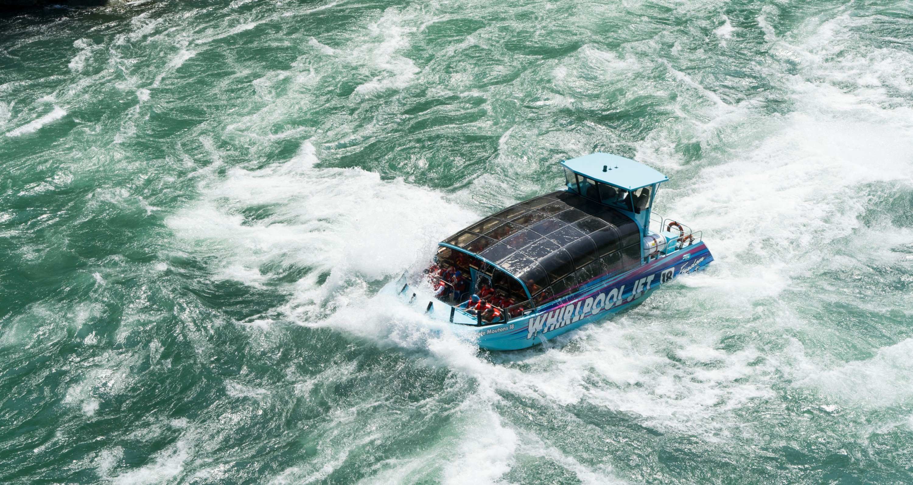 Whirlpool Jet Boat Tours has been Niagara’s premier adventure tour on the Niagara River for over 35 years! On this epic tour, you will view awe-inspiring scenery, experience the history of the Niagara Gorge, Niagara Falls & the War of 1812 and feel the rush of the Class 5 white water rapids.