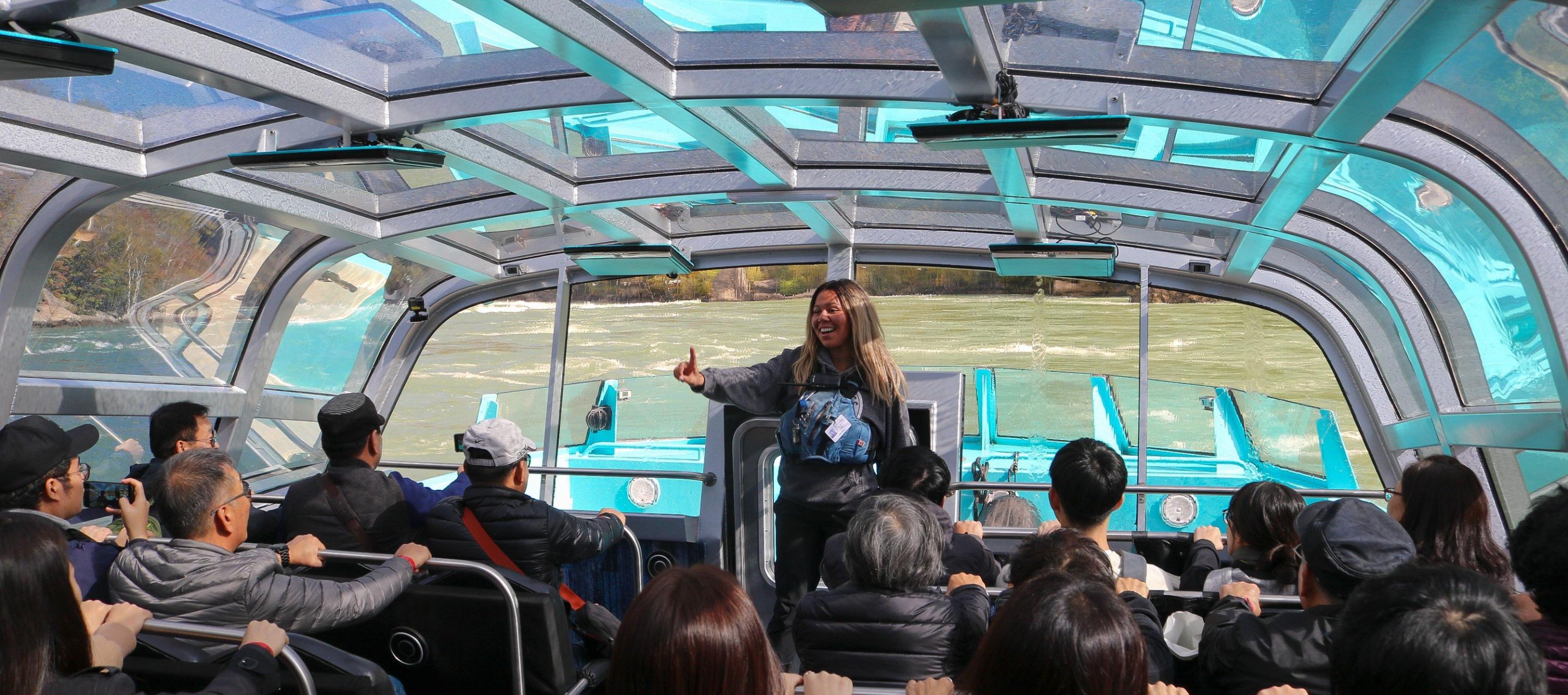 The fully guided tour starts on the lower Niagara River into the Niagara Gorge in a Wet Jet (wet trip) or Freedom Jet (wet or dry trip) - at 55mp/hour. We then take you up to the famous Niagara Whirlpool and through the Class 5 ‘Devil’s Hole’ rapids. Over the past 12,000 years, the turbulent currents from Niagara Falls have carved out an 11 km gorge, and this is the water playground for our fleet of eight boats that are ready to take you on an experience of a lifetime. Our highly trained staff operate our boats with triple turbo diesel water jet systems, a design that is incredibly reliable and safe, but also delivers a fun and exhilarating ride!