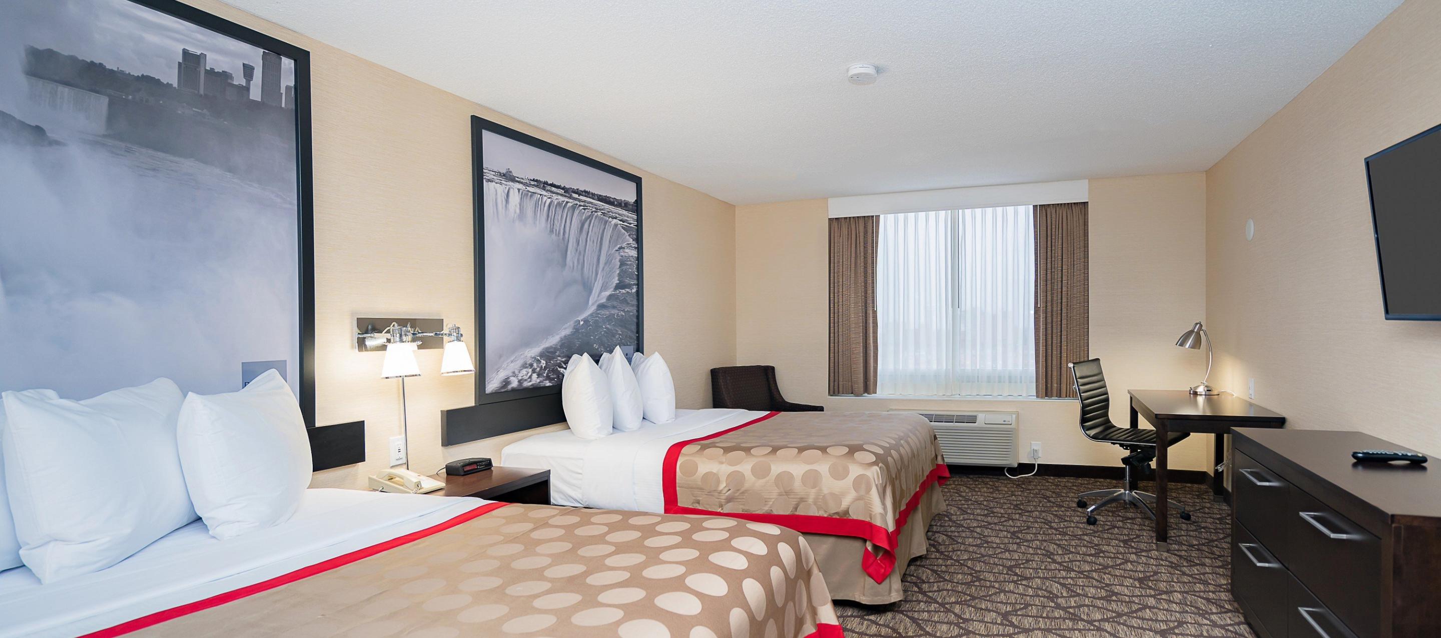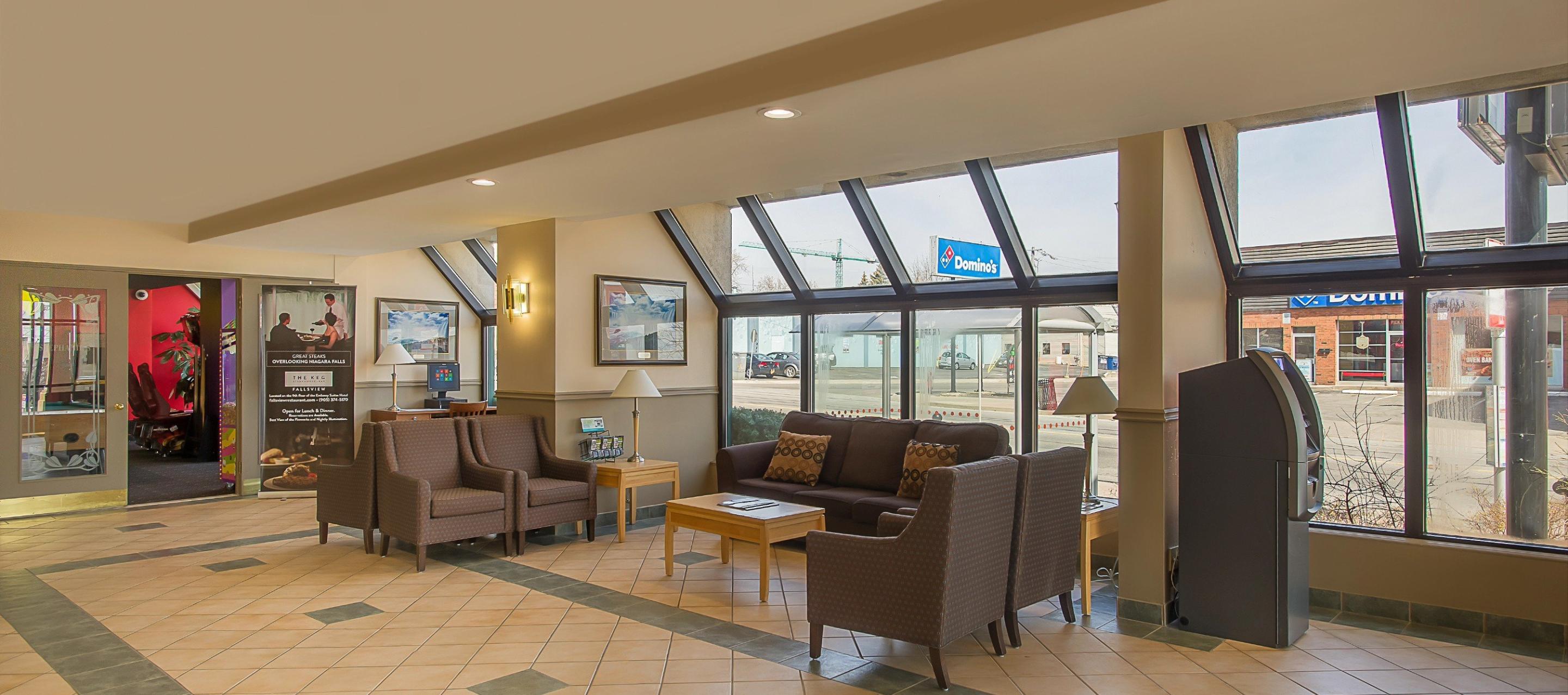 The Ramada by Wyndham Near the Falls Hotel is a 10-minute walk to the Falls and conveniently located near major Niagara Falls attractions, including Journey Behind the Falls, Niagara Boat Tour Cruises, and the Niagara Parks Power Station. The world-famous Clifton Hill district is within a short walk from the hotel. The Fallsview Casino, with 150 gaming tables, 300 slot machines and live entertainment in two venues—the Avalon Theatre (an intimate 1500-seat venue) and their brand new 5000 seat OLG Stage at Fallsview Casino—is walking minutes to the hotel. Skylon Tower and other attractions are also within sight of the hotel. Our hotel amenities include an indoor pool, fitness room, and arcade for all to enjoy.
